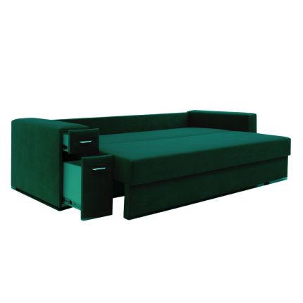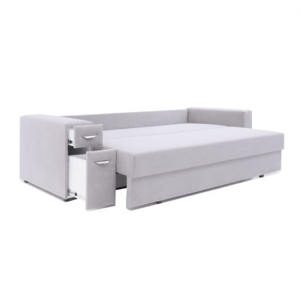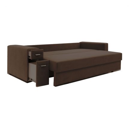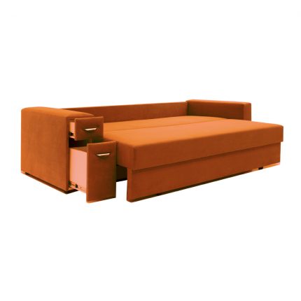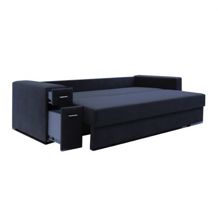 Canapea model II/I – extensibila, este prevazuta cu lada de depozitare, are cadrul din placi aglomerate din lemn, iar şezutul
